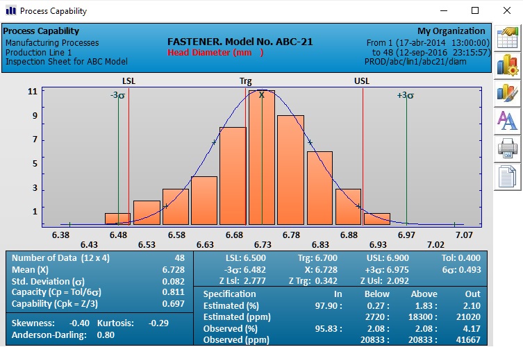 Capability Index. * Bias, kurtosis and normality fit analysis. * Theoretical and observed nonconforming